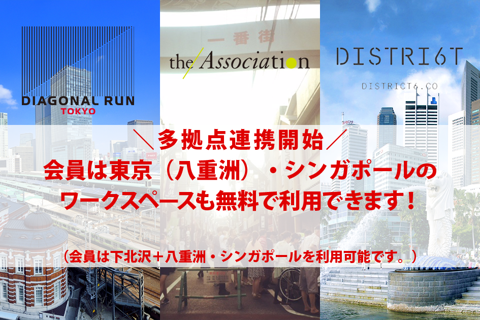 \国内外のワークスペースと下北沢the Associationの 連携がスタート!/ the Associationのメンバー(固定・フリーアドレス)は6月21日より、八重洲とシンガポールのフリーデスクを無料でご利用いた…